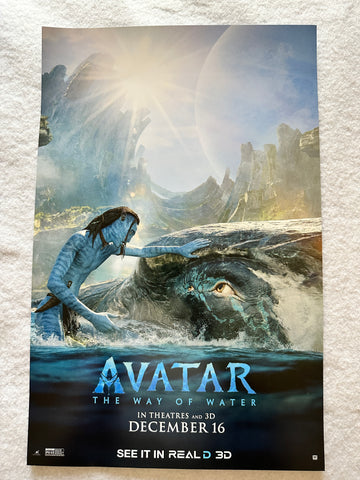 This is a mini original promotional poster for the movie AVATAR: THE WAY OF THE WATER (2022). Poster is double sided with a different image on each side.