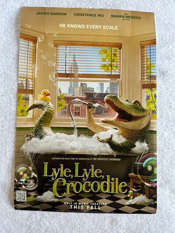 This is a mini original promotional movie poster for the movie LYLE, LYLE, CROCODILE (2022). Poster is double sided with games on the back. Poster measures approximately 11" x 17" and is in Mint Condition.