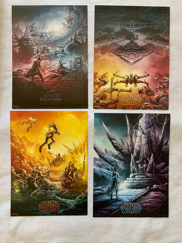 This is a complete set of 4 original promotional movie posters for the Movie STAR WARS THE RISE OF SKYWALKER (2019). These posters were exclusive to the AMC Theater Chain and only available at 4 different Sunday Imax Screenings.